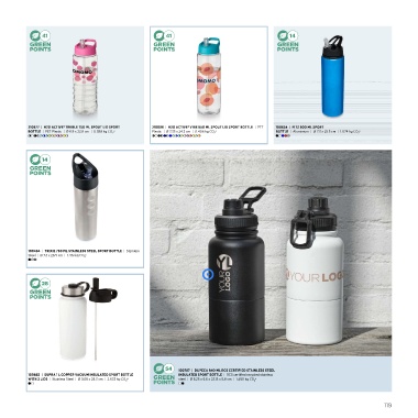 BOTTLE | PET Plastic | Ø 8.9 x 22.8 cm | 0.389 kg CO 2 e Plastic | Ø 7.35 x 24.2 cm | 0.406 kg CO 2 e BOTTLE | Aluminium | Ø 7.3 x 25.5 cm | 1.074 kg CO 2 e