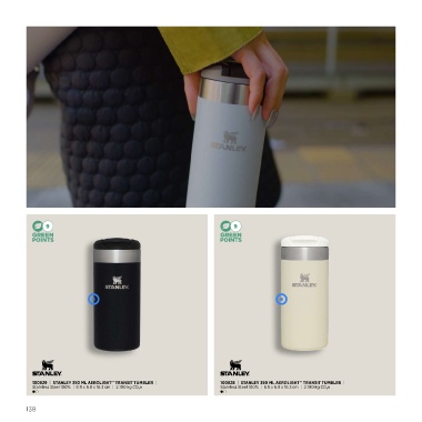 9 9 100829 | STANLEY 350 ML AEROLIGHT™ TRANSIT TUMBLER | 100828 | STANLEY 350 ML AEROLIGHT™ TRANSIT TUMBLER | Stainless Steel 100% | 6.9 x 6.9 x 16.3 cm | 2.190 kg CO e Stainless Steel 100% | 6.9 x 6.9 x 16.3 cm | 2.190 kg CO e 2 2 138