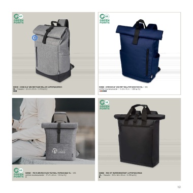 120548 | HOSS 15.6” GRS RECYCLED ROLL-UP LAPTOP BACKPACK 120659 | BYRON 15.6” GRS RPET ROLL-TOP BACKPACK 18L | GRS