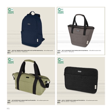 120677 | JOEY 15.6” GRS RECYCLED CANVAS ANTI-THEFT LAPTOP BACKPACK 18L | GRS certified recycled 120679 | JOEY 9-CAN GRS RECYCLED CANVAS LUNCH COOLER BAG 6L | GRS certified recycled cotton -