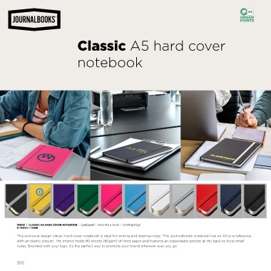 106181 | CLASSIC A5 HARD COVER NOTEBOOK | Cardboard | 21.3 x 14.5 x 1.5 cm | 0.279 kg CO e