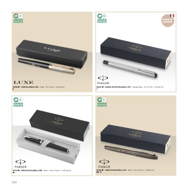 107292 | DORÉ ROLLERBALL PEN | Metal | Ø 1.1 x 14 cm | 0.116 kg CO e 106484 | PARKER VECTOR ROLLERBALL PEN | Stainless Steel | Ø 1 x 12.9 cm | 0.140 kg CO e