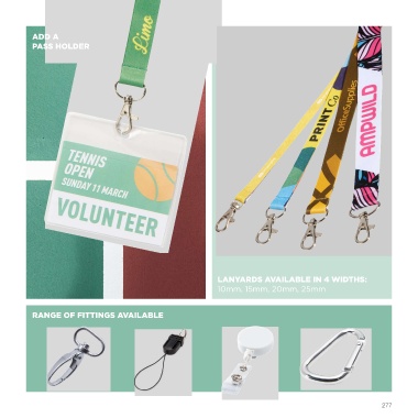 ADD A PASS HOLDER LANYARDS AVAILABLE IN 4 WIDTHS: 10mm, 15mm, 20mm, 25mm RANGE OF FITTINGS AVAILABLE 277