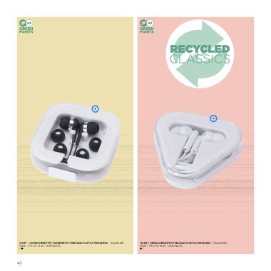 124437 | DOFIDA WIRED TYPE-C EARBUDS WITH RECYCLED PLASTIC STORAGE BOX | Recycled ABS 124439 | REBEL EARBUDS WITH RECYCLED PLASTIC STORAGE BOX | Recycled ABS