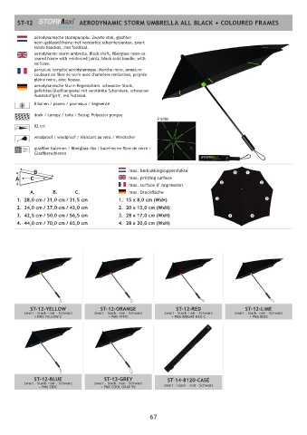 ST-12                       AERODYNAMIC STORM UMBRELLA ALL BLACK + COLOURED FRAMES