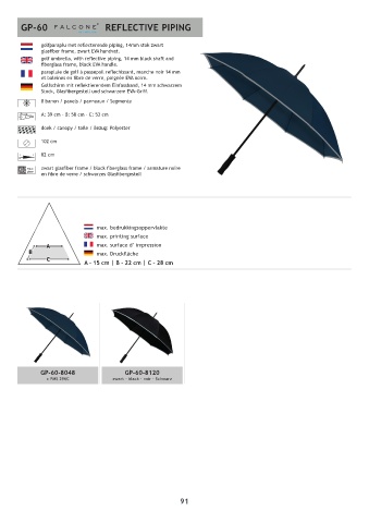 golf umbrella, with reflective piping, 14 mm black shaft and