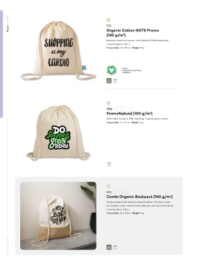 100% cotton backpack. With drawstring. Capacity approx. 8 litres.