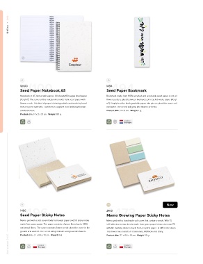 Memo pad with a soft cover made from seed paper and 50 sticky notes Memo pad with a handmade soft cover that contains seeds. With 75