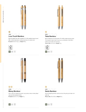 Product dim. Ø 1,1 x 15,2 cm. Weight 14.4 g. bamboo push button and metal clip.