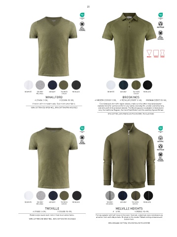 100% COTTON (120 GREY MEL. 85% COTTON/15% VISCOSE) side slits and 1x1 rib at bottom sleeves. The Brookings polo is available in three stylish