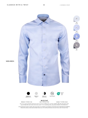 OUR SIGNATURE FINE TWILL-WEAVE. 100% LONG STAPLE 2-PLY COMPACT COTTON. NON-IRON PATENTED ENVIRONMENTAL TREATMENT.