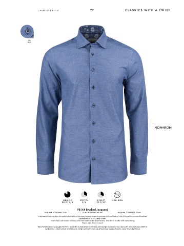 A lightweight non-iron dress shirt with brushed surface, that gives a unique, luxurious and super soft hand feeling. It has all the performance and hand feel
