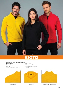 Raglan sleeves Ribbed collar Additional fabric behind the collar