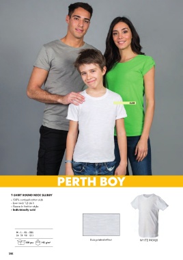 SLUB PERTH BOY T-SHIRT ROUND NECK SLUBBY - 100% combed cotton slub - Low neck 1.2 cm h - Sleeve in fashion style - Individually sold M - L - XL - XXL 5/6 7/8 9/11 12/13 Slub printed effect WHITE 990920 100 pcs 145 g/m² 356