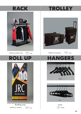 RACK TROLLEY 999993 (cm:120x50 h160) 1 pcs 999997 (cm:70x35x35) 1 pcs ROLL UP HANGERS 35 pcs 5 pcs Booking only 999994 999995 (cm: 90x205h) 1 pcs 40 pcs 423
