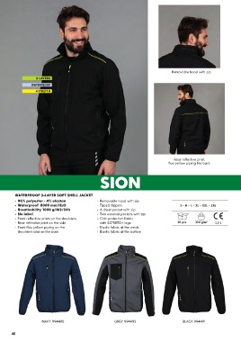 - Front reflective prints on the shoulders - Chin protection fabric