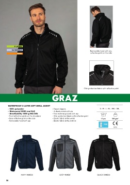 - Front reflective prints on the shoulders - Chin protection fabric with reflective print