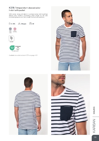 Ribbed crew neckline. Contrasting chest pocket on left side.