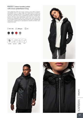 microfleece. Slim fit. Body, collar and hood lining in matching
