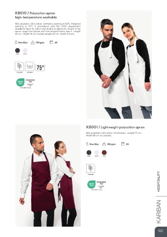 65% polyester / 35% cotton. Domestic washing at 60°C. Industrial