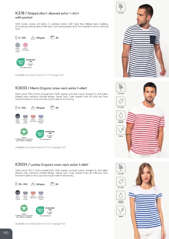 Ribbed crew neckline. Knitted stripes. Taped neck. Twin needle finish at cuffs and hem.