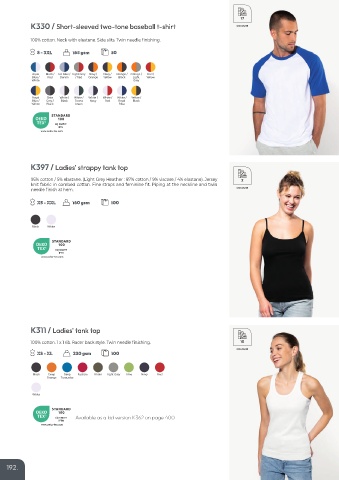 100% cotton. 1 x 1 rib. Racer back style. Twin needle finishing. 10