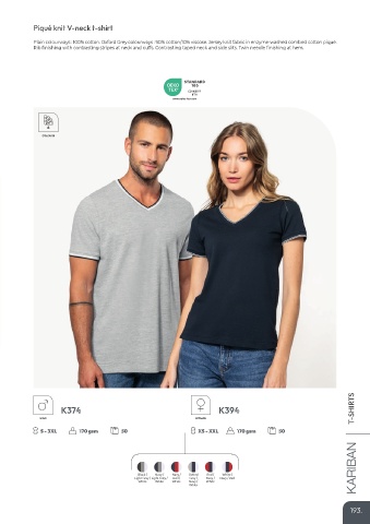 Plain colourways : 100% cotton. Oxford Grey colourways : 90% cotton/10% viscose. Jersey knit fabric in enzyme-washed combed cotton piqué.