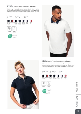 65% polyester/35% cotton). Contrasting neck and inner placket with