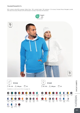 80% combed cotton/20% polyester (Oxford Grey : 76% combed cotton / 21% polyester / 3% viscose). Brushed fleece. Kangaroo pocket