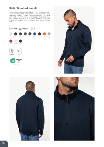 sleeves. Zip neck with matching plastic zipper. Contrasting taped