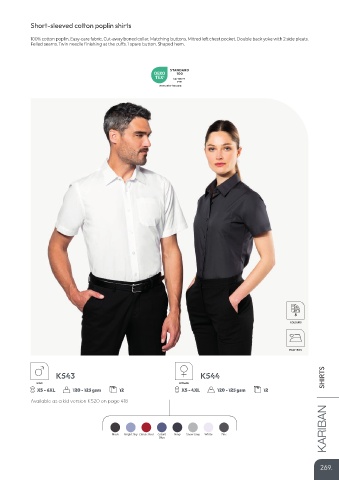 100% cotton poplin. Easy-care fabric. Cut-away boned collar. Matching buttons. Mitred left chest pocket. Double back yoke with 2 side pleats.