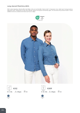 100% cotton chambray. Denim-effect light fabric. Soft and comfortable. Fashion slim fit. Decorative inner collar band. Contrast buttons.