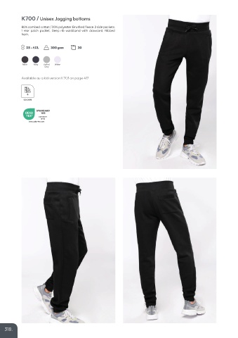 1 rear patch pocket. Deep rib waistband with drawcord. Ribbed