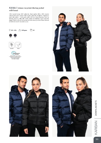 100% recycled ripstop 380T polyamide. Water-repellent fabric. 100% recycled