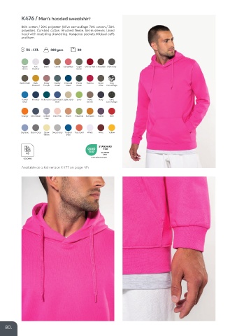 hood with matching drawstring. Kangaroo pockets. Ribbed cuffs