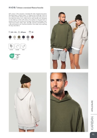 Brushed fleece. Carded cotton. 1x1 ribbing with a tubular finish on