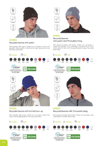Recycled beanie with knitted turn-up              Recycled beanie with Thinsulate lining
