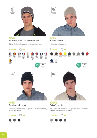 100% acrylic. Knitted beanie with contrast two-tone band.  100% acrylic. Knitted beanie.