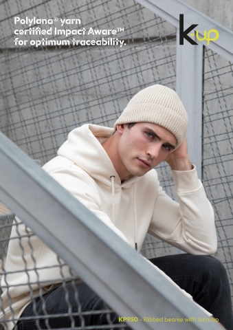 Polylana® yarn certified Impact Aware™ for optimum traceability. KP950 - Ribbed beanie with turn-up