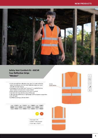 • Hi-Vis vest with four reflective strips: two 5 cm wide reflective Vertical