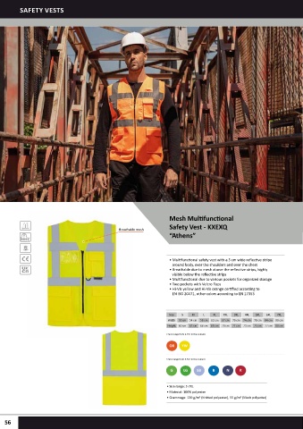 • Breathable due to mesh above the reflective strips, highly