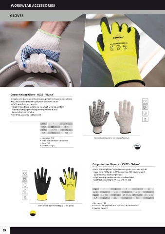Hem colours depend on the size of the gloves • Material: 70% polyester, 20% elastane, 10% stainless steel