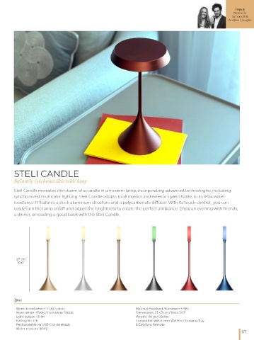 synchronized multicolor lighting. Steli Candle adapts to all interior and exterior styles thanks to its IPX4 water