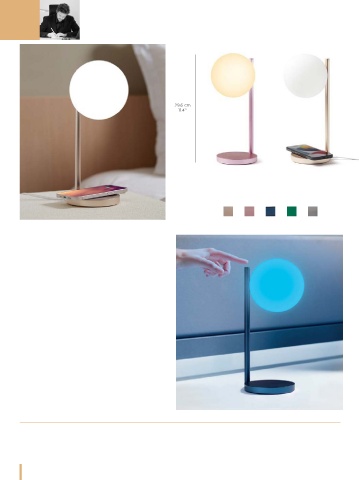 charger is subtly integrated into the base and a dimmer and intuitive touch controls, Helia offers