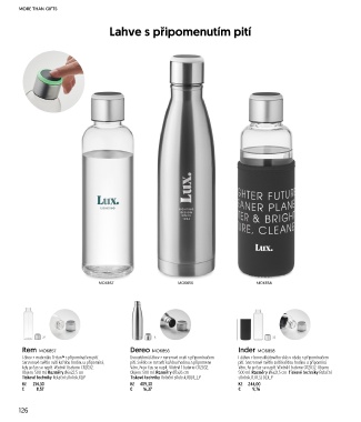 Láhev z materiálu Tritan™ s připomínačem pití. Dvoustěnná láhev z nerezové oceli s připomínačem Lááhev z borosilikátového skla v obalu s připomínačem
