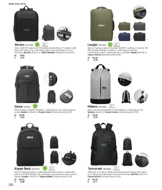 polyesteru (70 %/30 %). Má přední a zadní kapsu na zip, polstrovaná záda a ramenní pro 15’’ laptop, jednu hlavní kapsu na zip a dvě boční kapsy. Rozměry 31x17x50 cm