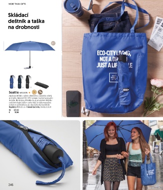 sroluje se a přihrádka na zip slouží jako obal na deštník.