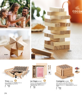 4 hry v dřevěné krabici. Rozměry 16x16x3 cm Hrací set s 54 kartami a 5 kostkami. Balené Sada 4 podtácků z korku a MDF včetně sady
