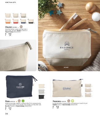 Taštička na kosmetiku a doplňky z recyklované látky (70 % recyklovaná bavlna Kosmetická taštička z organické bavlny s barevným zipem. Gramáž 340 g/m².