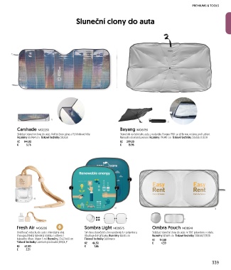 Osvěžovač vzduchu do auta s éterickými oleji. Set dvou slunečních clon vyrobených z polyesteru. Skládací sluneční clona do auta ze 170T polyesteru v obalu.
